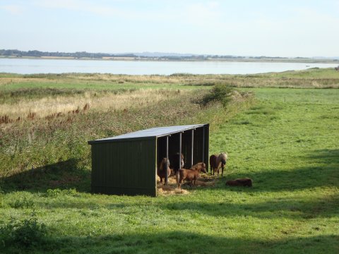 Ponyerne nyder solens sparsomme stråler i kulden 3/1-2010. Minus 5-10 grader om dagen og helt ned til minus 10-15 grader om natten - så det er rigtig koldt !