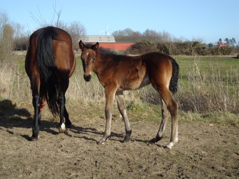 Særdeles god og veludviklet hoppe med kønt hoved. God dybde og bredde. Føre lemmer men lidt indfodet højre for. Taktfast og lige i skridt og trav.