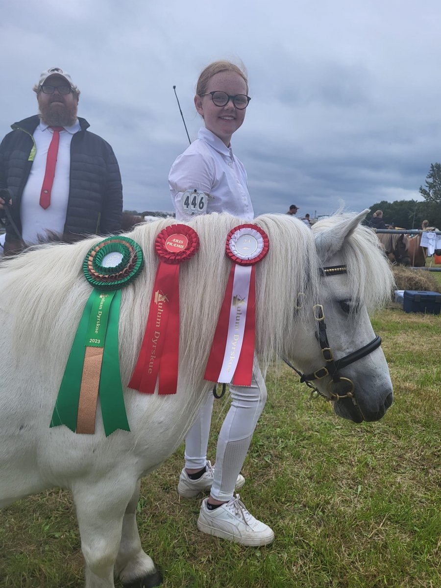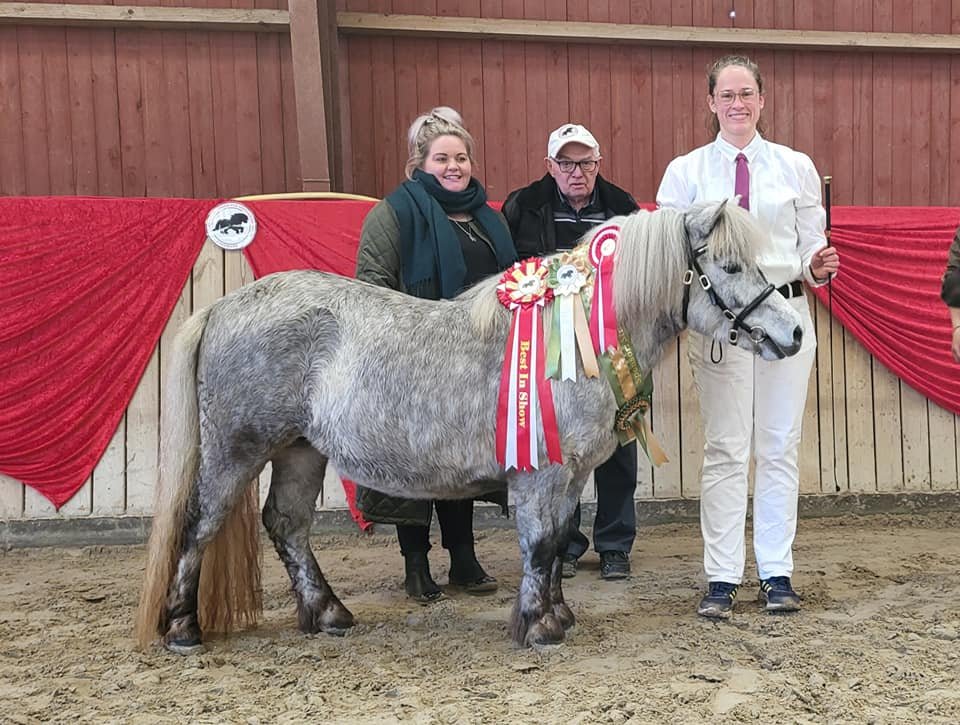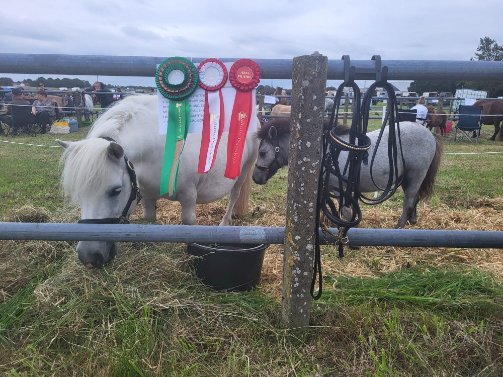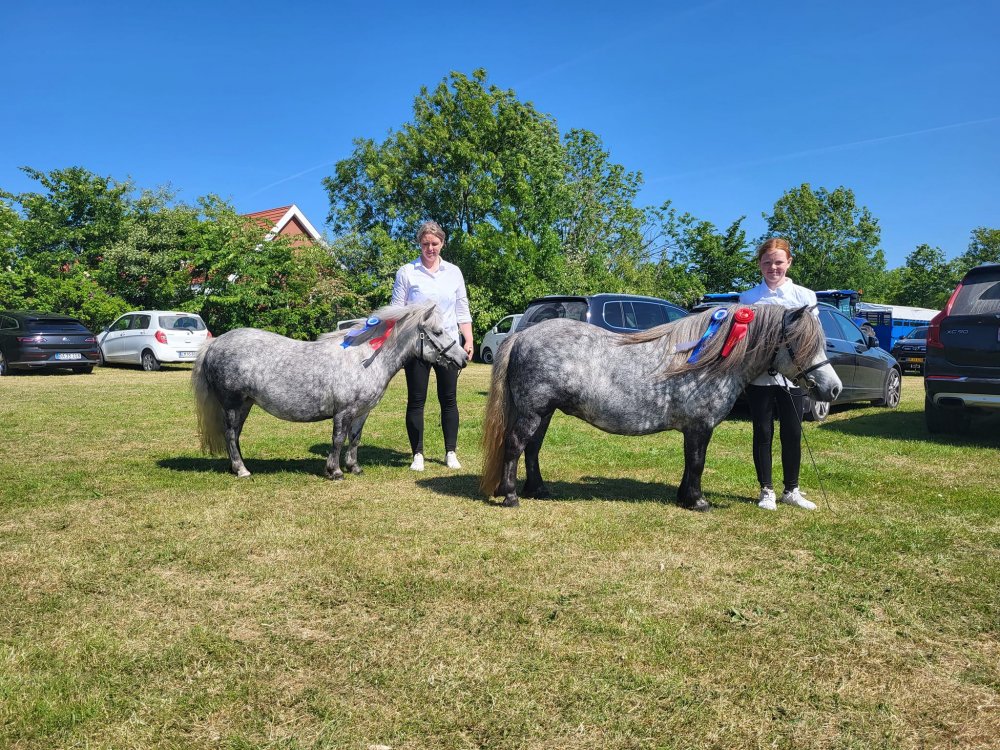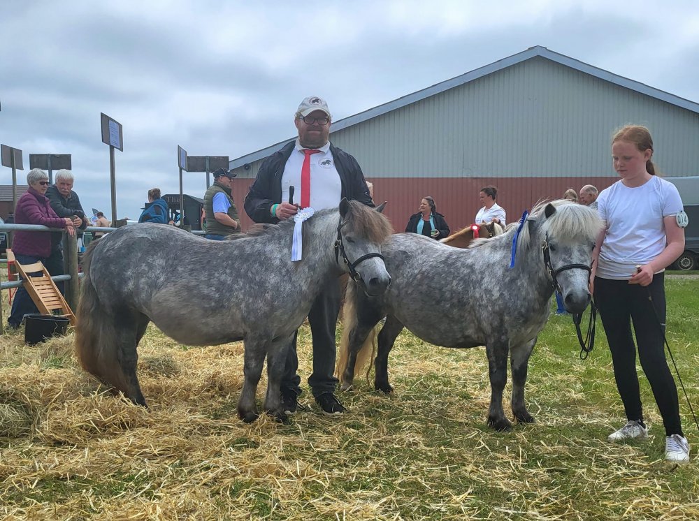 Vi har være til et dejligt dyrskue i Thisted. Vi havde taget 4 årige Bådsgårds Daisy og 3 årige Bådsgårds Bella med. I år havde vi fået Caroline og Dorthe Henriksen Nørgaard til at hjælpe os med at vise ponyerne og det gjorde de super flot. Begge hopper fik 23 point og ærespræmie, og så blev Daisy udpeget som skuets bedste Shetlandspony.