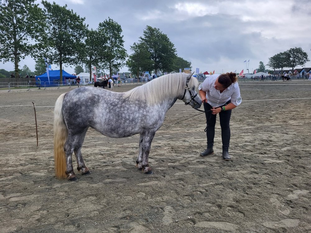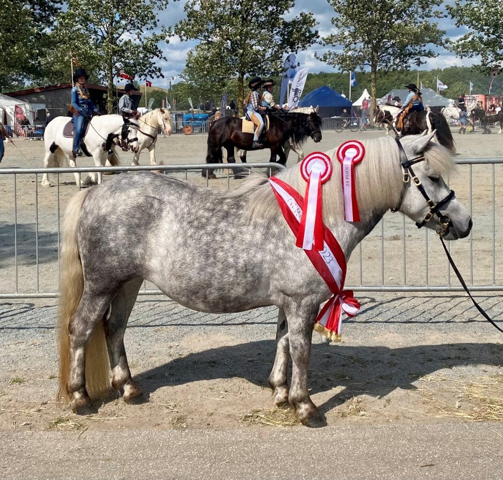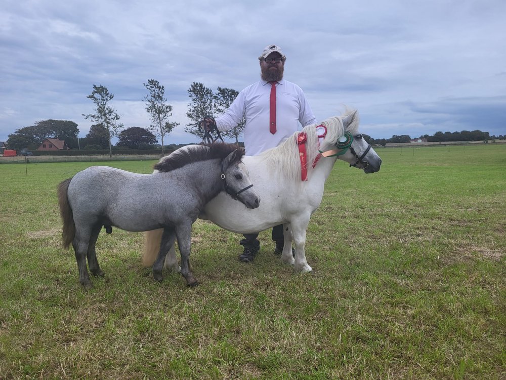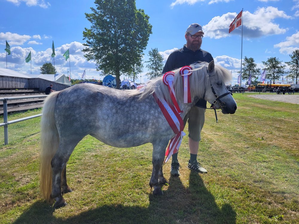 Vi har være til et dejligt dyrskue i Thisted. Vi havde taget 4 årige Bådsgårds Daisy og 3 årige Bådsgårds Bella med. I år havde vi fået Caroline og Dorthe Henriksen Nørgaard til at hjælpe os med at vise ponyerne og det gjorde de super flot. Begge hopper fik 23 point og ærespræmie, og så blev Daisy udpeget som skuets bedste Shetlandspony.