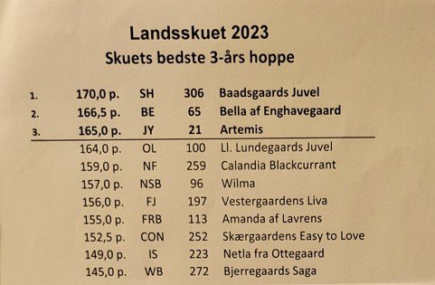 Først skulle Juvel ind i et rigtig stærkt 3 års hold, men på trods af det lykkes det Susanne Dahl Kjærgaard at få Juvel vist på bedste vis, så hun tog fløjpladsen. Hun blev belønnet med 24 point og ærespræmie, samt en billet til fælleskonkurrencen om Landsskuets bedste 3 års. Hvis man kender vores Juvel, så vil man vide at jo mere der klappes og heppes, des sjoverer syntes hun det er at vise sig frem. Susanne fik forvaltet og vist hvad Juvel kan - og det utrolige skete - hun blev udpeget som Landsskuets bedste 3 års hoppe på tværs af alle racer. I år fik Kjeld fælleskonkurrence oplevelsen med og man må sige at vi begge var fuldstændige mundlamme og pavestolte at vores lille Juvel.