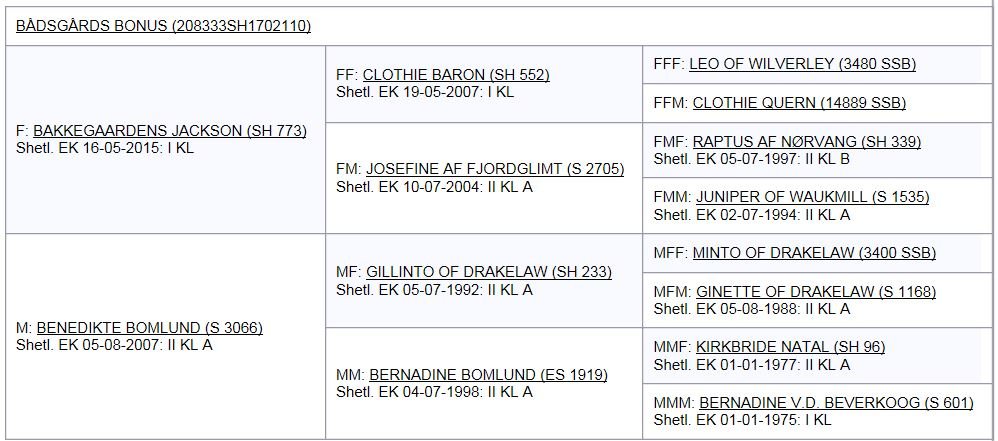 Bådsgårds Bonus's afstamning