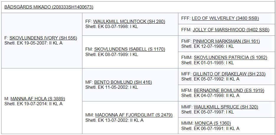 Bådsgårds Mikado's afstamning