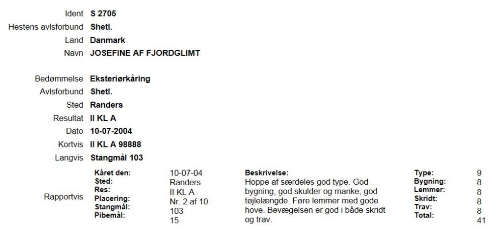 Josefine af Fjordglimt  - Kåringsbeskrivelse