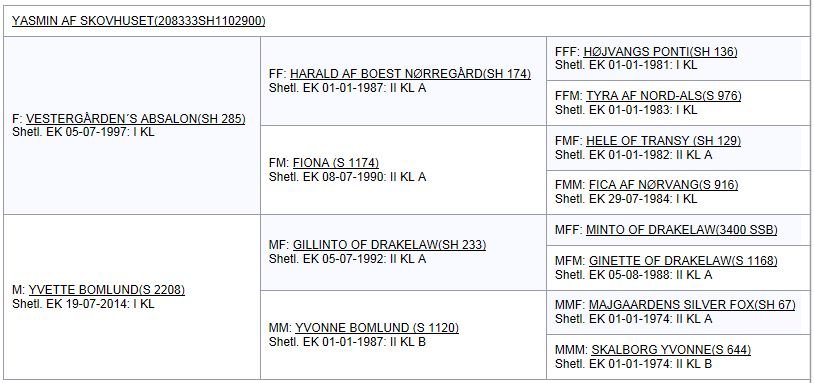 Afstamning - Yasmin af Skovhuset