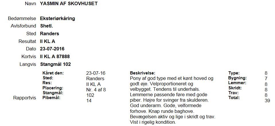 Yasmin af Skovhuset - kåringsbeskrivelse